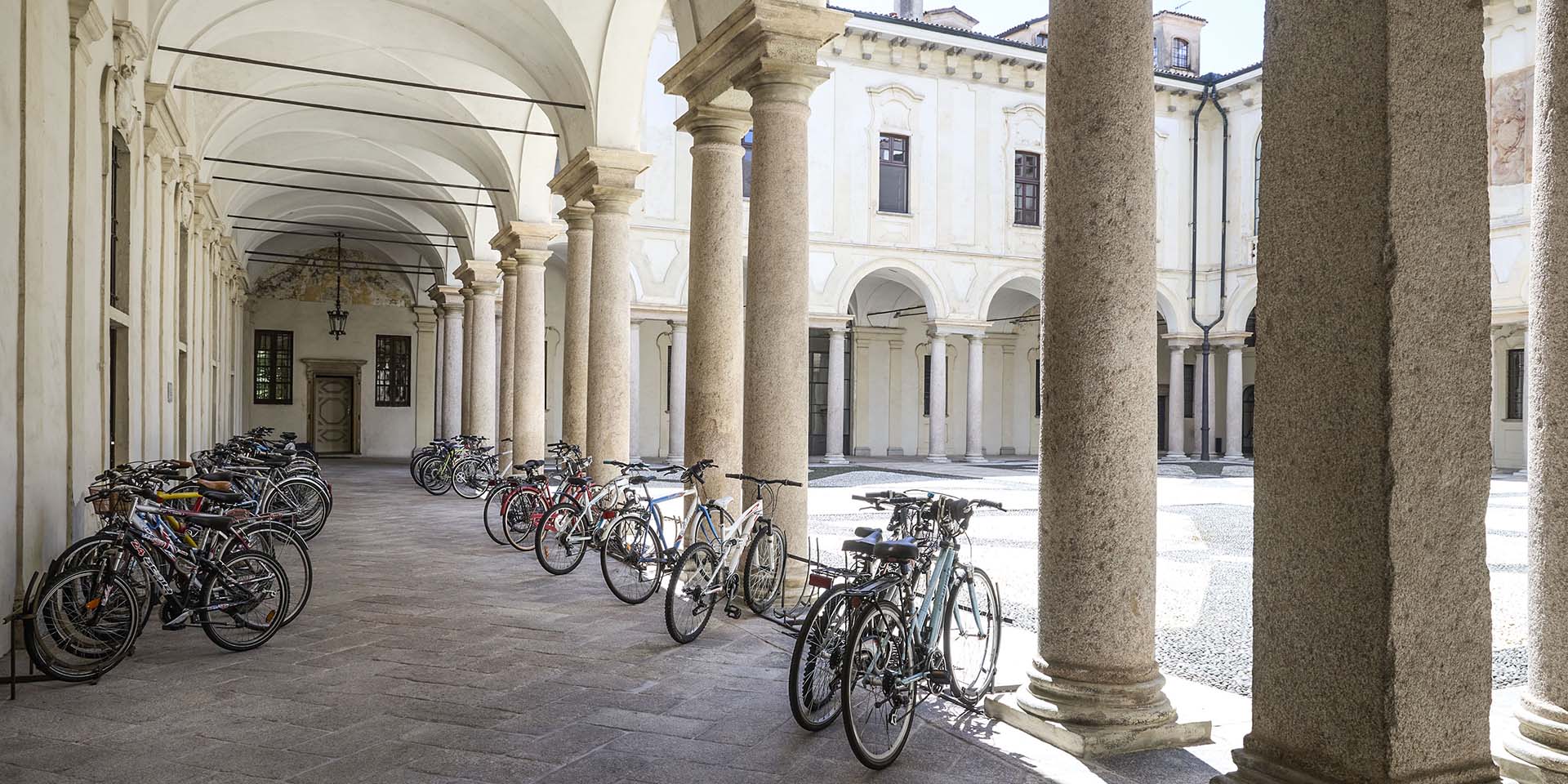 Quadriportico del Collegio Ghislieri di Pavia con biciclette
