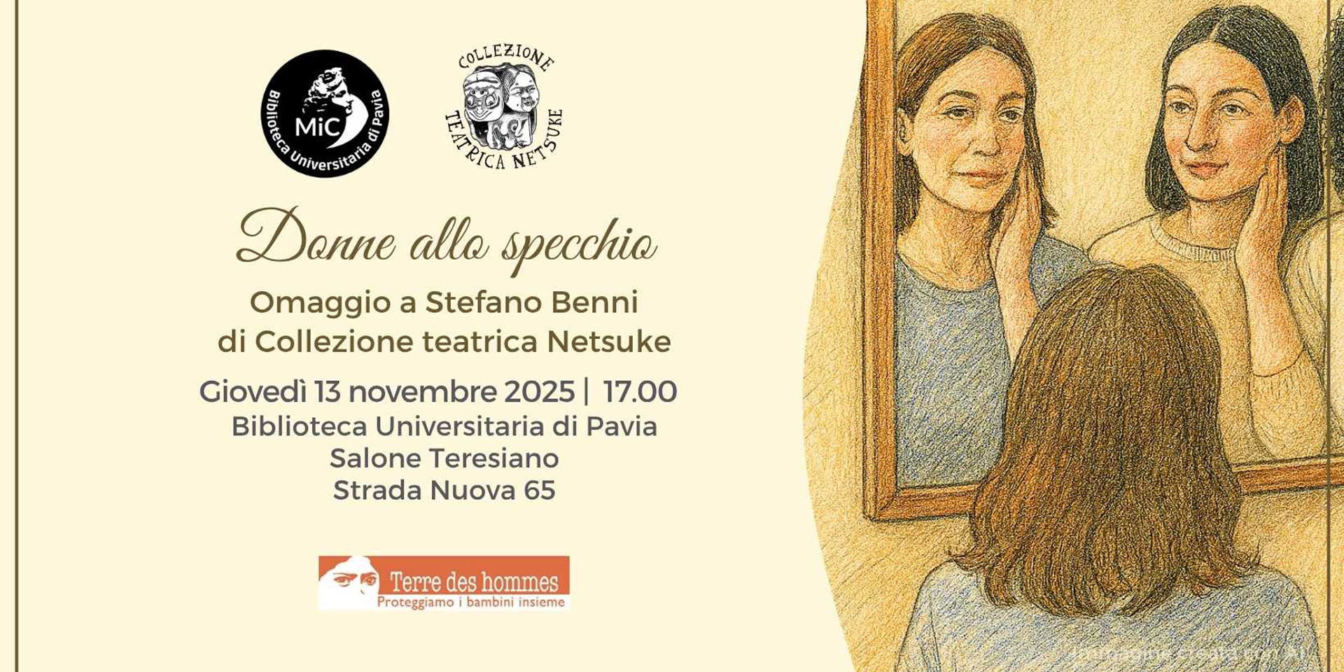 Giovedì 13 novembre 2025, alle ore 17:00, presso la Biblioteca Universitaria di Pavia, si terrà l'incontro "Donne allo specchio. Omaggio a Stefano Benni".