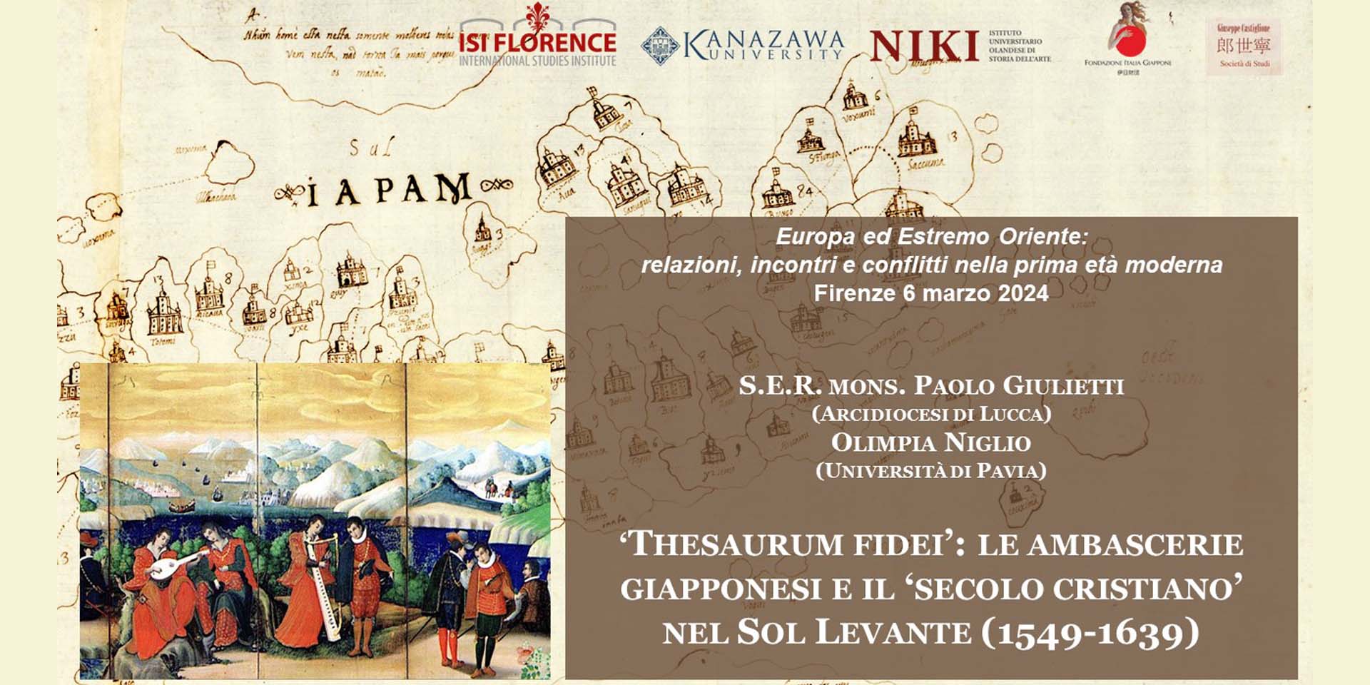 Il 6 marzo 2024, alle ore 17:00, presso Palazzo Rucellai (Via della Vigna Nuova 18, Firenze), si inaugura il convegno internazionale “Europa ed Estremo Oriente: relazioni, incontri e conflitti nella prima età moderna”, organizzato da ISI Florence, The International Studies Institute, istituto fondato nel 2001 in collaborazione con l’Università di Kanazawa (Giappone), NIKI Istituto Universitario Olandese di Storia dell’Arte, la Fondazione Italia Giappone presso il Ministero degli Affari Esteri e della Cooperazione Internazionale e la Società di Studi Giuseppe Castiglione.