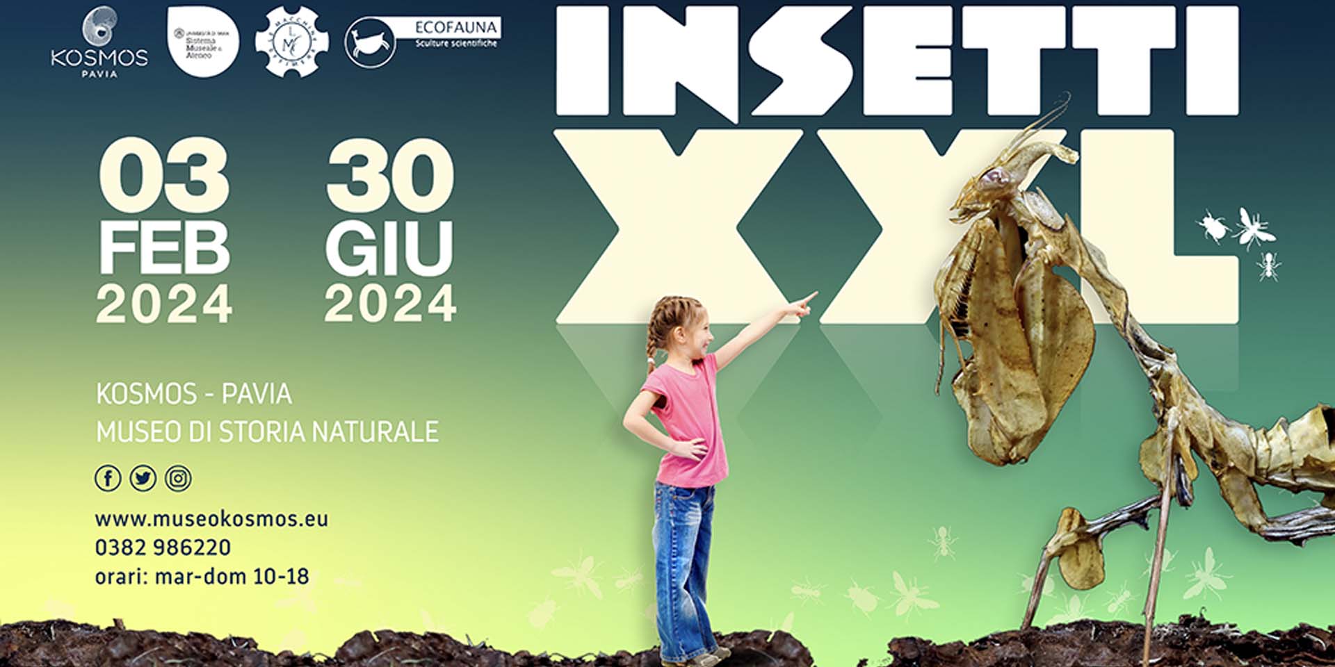 Kosmos, il Museo di Storia Naturale dell’Università di Pavia, inaugura venerdì 2 febbraio 2024, alle ore 17:00, la nuova mostra INSETTI XXL, un viaggio tra riproduzioni di insetti in formato gigante alla scoperta di questi affascinanti abitanti del nostro pianeta.