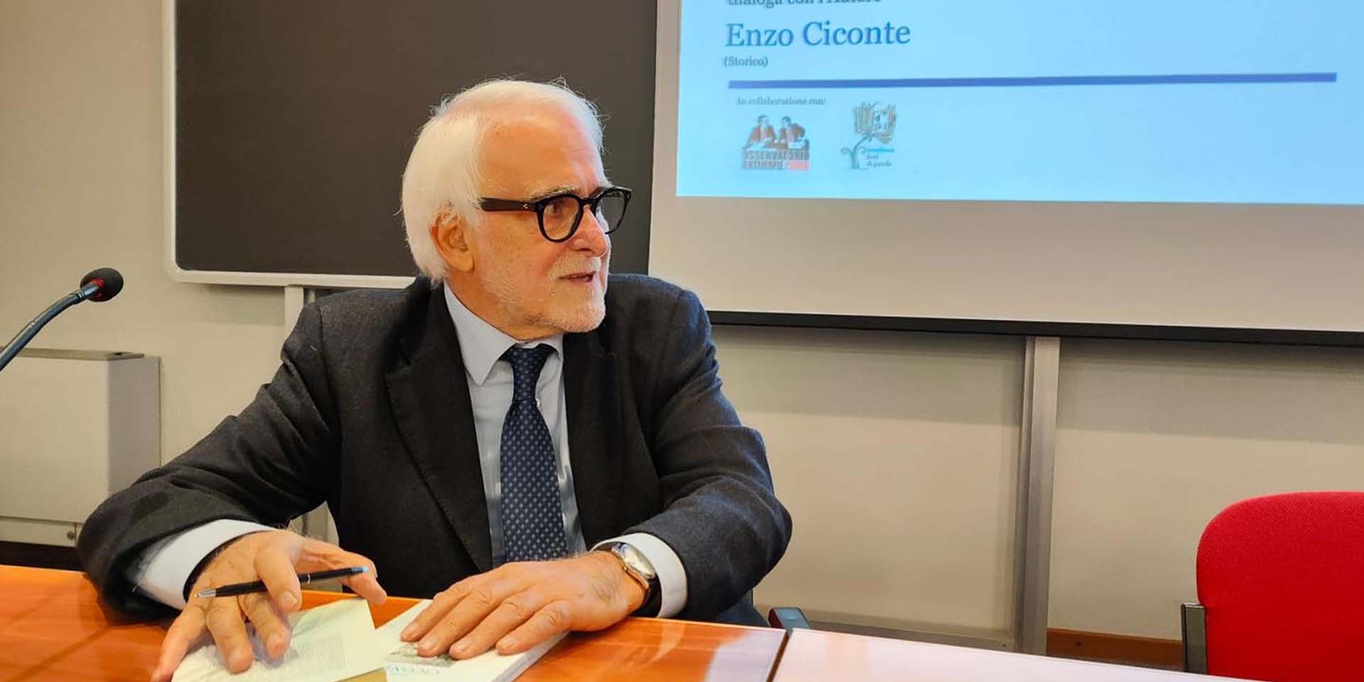 Enzo Ciconte durante un evento al Collegio S. Caterina