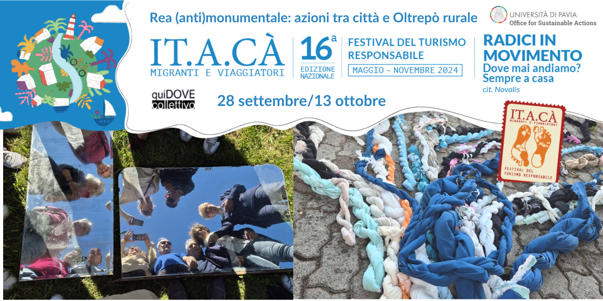 Il Festival I.T.A.CÀ Tappa di Pavia e Oltrepò Pavese è organizzato dall’Ufficio Azioni di Sostenibilità – OSA e dal Servizio Terza Missione dell’Università di Pavia. L’edizione 2024 coinvolge 8 regioni per un totale di 15 tappe. Un insieme di eventi da Nord a Sud d’Italia invitando tutti e tutte a un viaggio unico in tanti territori diversi. Il Festival IT.A.CÀ, evento partito nel mese di maggio e che porterà il turismo responsabile per l’Italia e le isole fino a novembre 2024, torna a Pavia e in Oltrepò Pavese dal 10 al 13 ottobre con 30 eventi e la partecipazione di una numerosa rete di realtà del territorio che hanno co-progettato il programma.