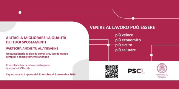 È possibile compilare il questionario sugli spostamenti dedicato a lavoratrici e lavoratori, proposto nell'ambito della redazione del Piano degli Spostamenti Casa-Lavoro (PSCL), in collaborazione con il Comune di Pavia. |