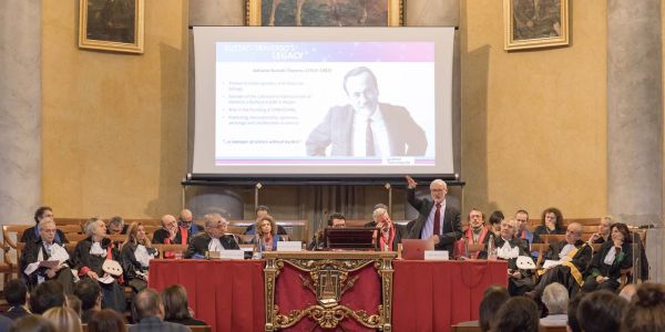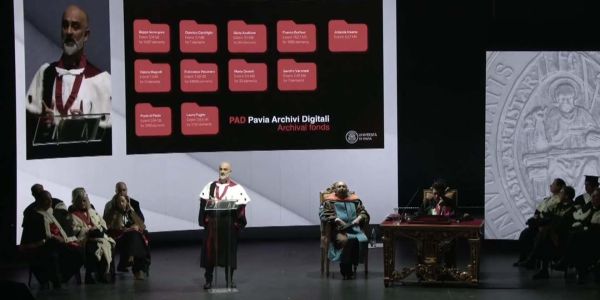 La cerimonia al Teatro Fraschini lunedì 20 gennaio, dedicata alle prospettive e ai programmi internazionali. Durante l'evento il ricordo dei 1200 anni dal Capitolare di Lotario, che iniziò a fare di Pavia un centro di attrazione per gli studenti. |