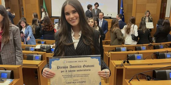 Ginevra Losapio, laureata presso l'Università di Pavia in Scienze Politiche e delle Relazioni Internazionali, ha partecipato alla cerimonia di premiazione tenutasi alla Camera dei Deputati. |