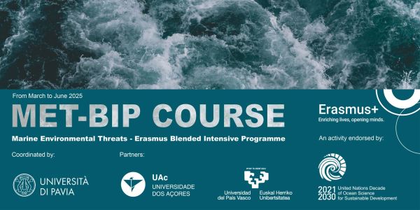 Il programma blended Erasmus+ "Marine Environmental Threats" è organizzato dalle Università di Pavia (Italia), delle Azzorre (Portogallo) e dei Paesi Baschi (Spagna). |
