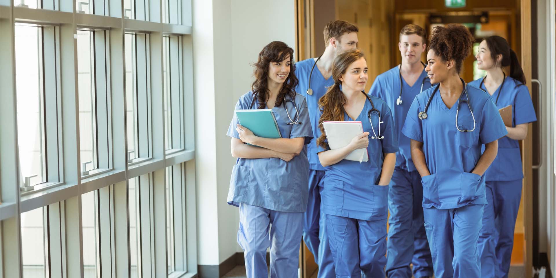 Specializzandi di medicina in un corridoio