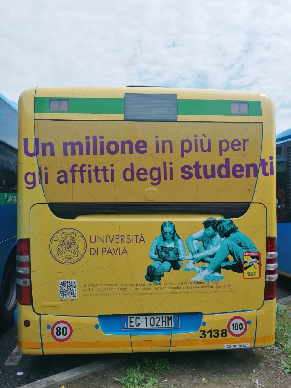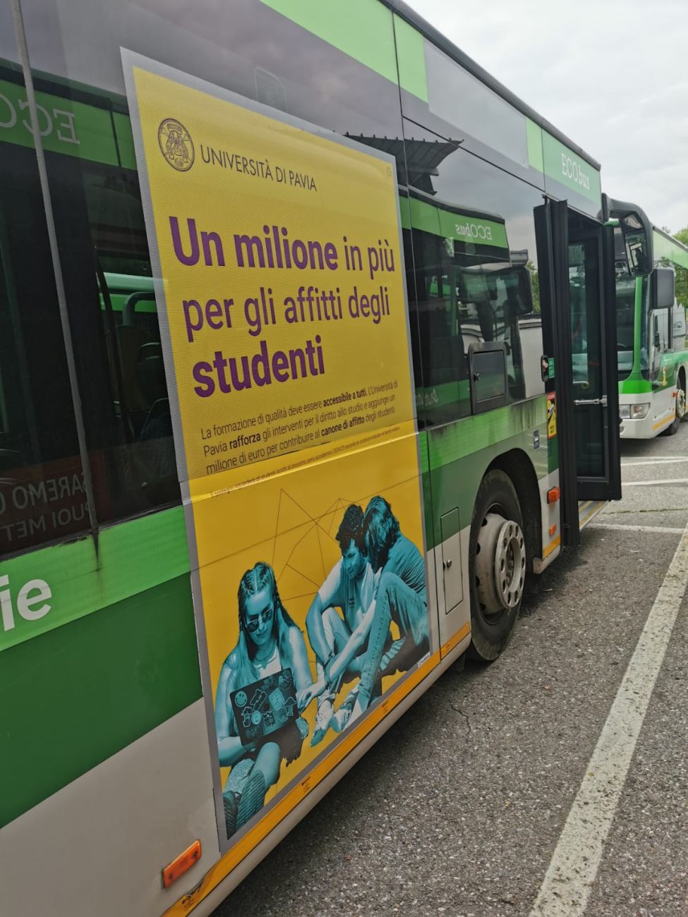 Dal 13 maggio al 12 settembre 2024 gli autobus urbani ed extra-urbani di Autoguidovie circoleranno dando visibilità alla grafica pensata per far conoscere le nuove misure economiche straordinarie per il diritto allo studio che l'Università di Pavia ha deliberato nel Consiglio di Amministrazione del 30 aprile 2024.