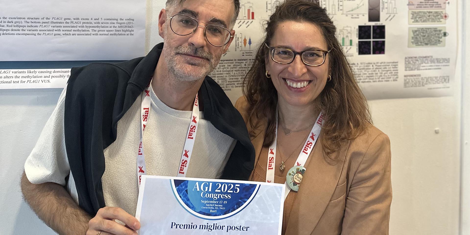 Il premio per il miglior poster nella sezione Epigenetic Variability è stato assegnato al dott. Manai per il lavoro “Epigenetic regulator TET2 is implicated in resistance to cisplatin-based therapy in High-Grade Serous Ovarian Carcinoma (HGSOC)”, che presenta risultati preliminari sul ruolo del gene TET2 nella risposta alle terapie a base di platino nel carcinoma ovarico sieroso di alto grado.