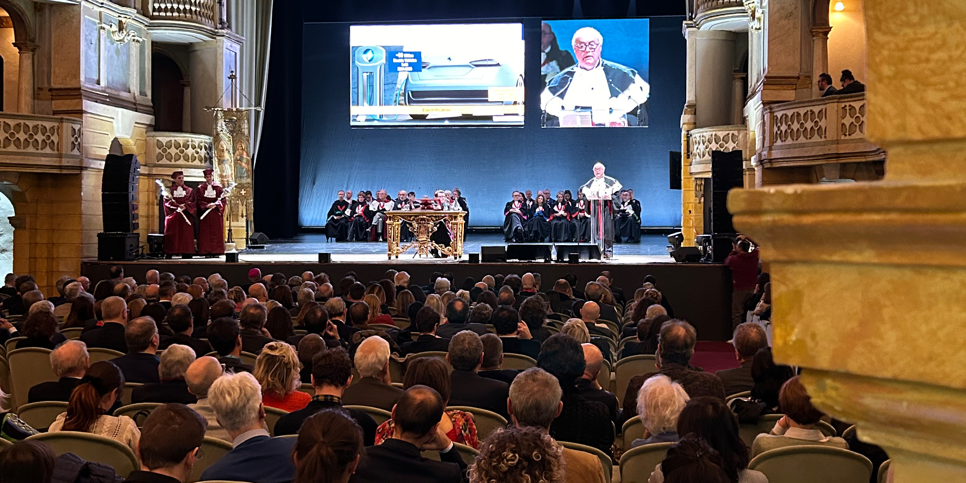 Lunedì 20 novembre l'Università di Pavia ha inaugurato ufficialmente l'Anno accademico 2023-2024, il 1199° dal Capitolare di Lotario e 663° dalla istituzione dello Studium Generale. La sede della cerimonia è stata nuovamente il Teatro Fraschini per consentire la più estesa partecipazione da parte di tutti i componenti della comunità: docenti, ricercatori, studenti e personale tecnico-amministrativo. Ospite d’onore dell’evento il Presidente e CEO di STMicroelectronics, Jean-Marc Chéry (nella foto, sopra).