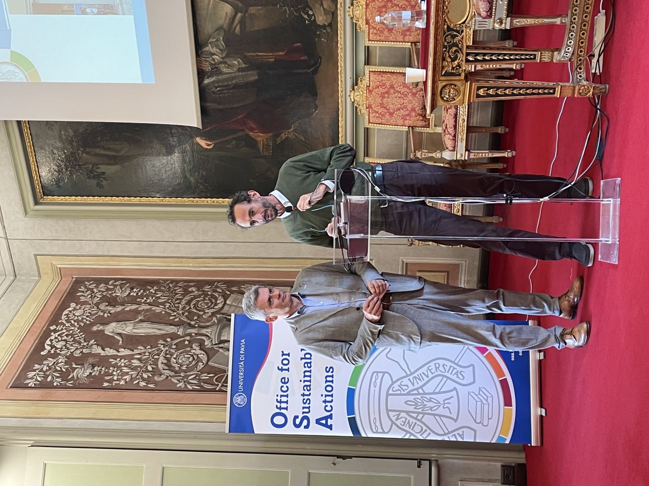 Il Rettore Francesco Svelto alla presentazione del Report di sostenibilità UniPv con il prof. Zatti