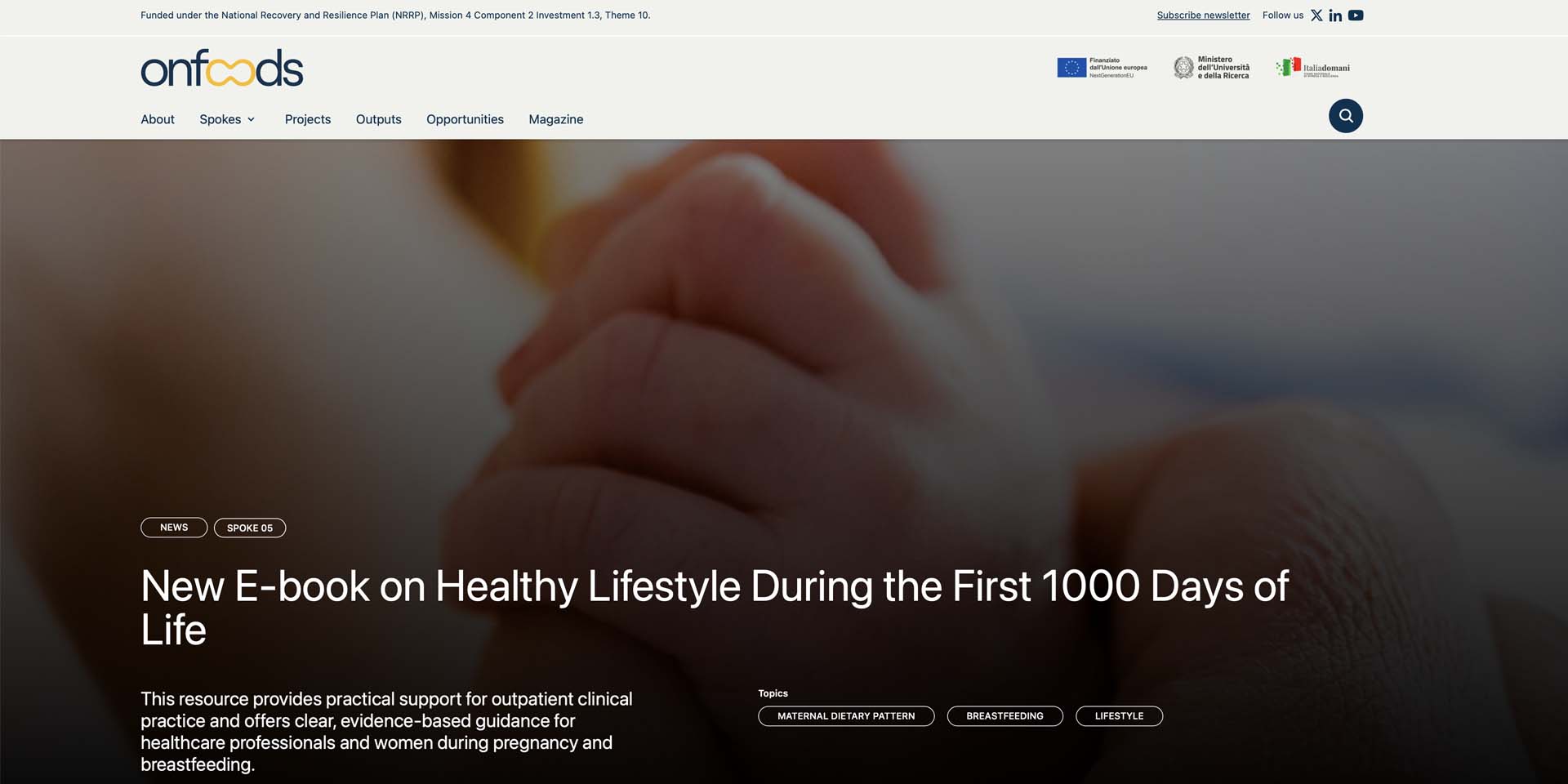 Il Laboratorio di Dietetica e Nutrizione Clinica dell'Università di Pavia (coordinato dalla prof.ssa Hellas Cena), nell’ambito della progettualità PNRR_OnFoods, ha sviluppato come prodotto di ricerca un e-book dedicato allo stile di vita sano nei primi 1000 giorni di vita.
